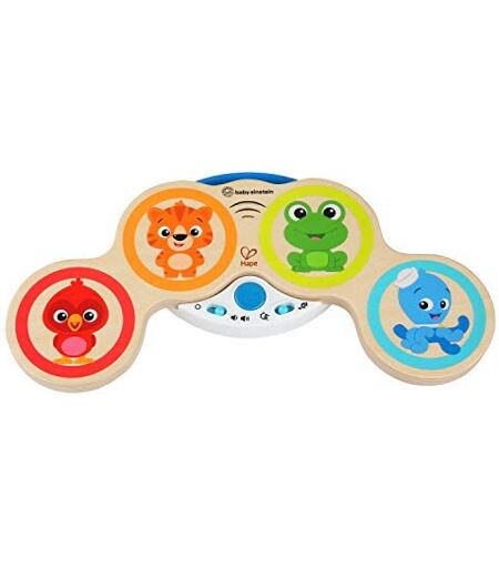 Youll be listening to Mozart in the making as your baby plays and experiments with Baby Einstein and Hapes Magic Touch Drums. Tap each of Baby Einsteins friends to play a different note, and magic touch technology means there are no buttons needed Baby toys that make music will encourage your rock star to think and act creatively. Two different modes mean there are lots of ways your little one can play or start composing his own hit melodies. The toys Drum Mode and Melody Mode let baby switch between playing along with classical tunes or moving to his own groove. Get ready to join in ¿ playing the drums is just as fun for baby as it is for you too And dont worry about waking little brother or sister. The volume control buttons let you turn the music to low when you need to, or crank it up to high to rock out. At either volume, the higher end quality speakers make sure your babys beats sound just right. ...