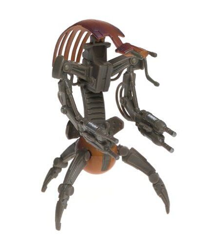 Droidekas, also known as destroyer droids, are deceptive in their movements. Appearing awkward on their three legs, they can curl into a ball-shaped form and roll swiftly toward their targets then spring open to fire their laser cannons. Step into The Clone Wars animated world with this articulated action figure based on the animated droids. In full detail, this fully assembled figure features spring-open arms and body, and launching blasters Pose him in defense as you stage him in your own galactic battles.p ...