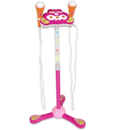 Console musicale I Girl 2 micros avec effets lumineux. Avec 10 démos, des effets d'applaudissements et de foule, 6 rythmes de batterie, un port de connexion à un lecteur MP3 (non inclus, câble intégré). Micro réglable en hauteur. Fonctionne avec 3 piles AA (non fournies). ...