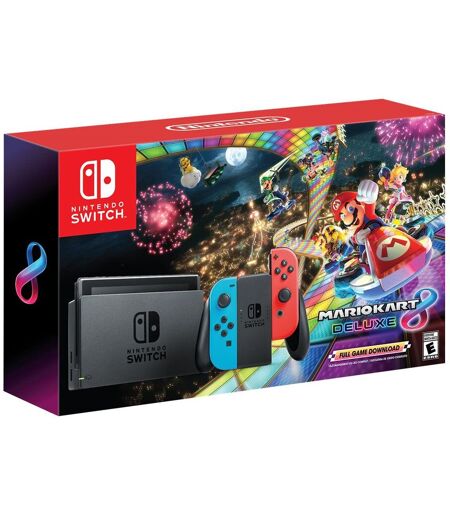Nintendo Switch With Neon Blue And Neon Red Joy-Con Mario Kart 8 Deluxe