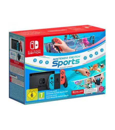 Nintendo Switch 1 1 Neon Red Neon Blue Avec Switch Sport Et Leg Band Et 3 Mois D'abonnement En Ligne Rouge