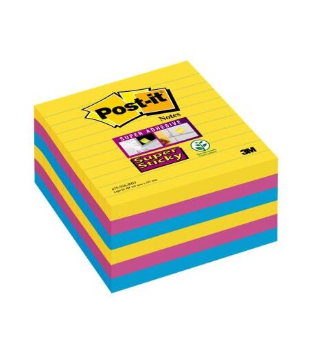 Notes Post-it Super Sticky lignées - grand format 10 x 10 cm - coloris assortis rio - lot de 6 blocs de 90 feuilles