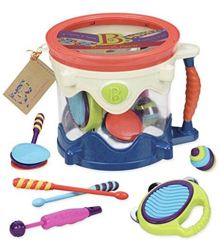 Music is a great way to help your child express themselves. The B. Drumroll drum set allows your child to explore music in any way they desire. With a variety of different instruments your little one will be making music in no time. They may even want to start a band This music set also comes with a handy drum that allows you to store all the instruments in for easy transport when you want to take the band on the road ...