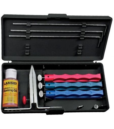 Kit d'aiguisage lansky 3 pierres + huile + étrier