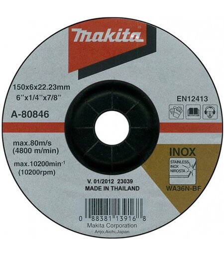 Spécifications techniques: • Diametre (D): 150 mm • Épaisseur: 6,0 mm • Support (diametre de l'arbre): 22,23 mm • Abrasif: WA36N • Lots: 10 Photo d'illustration> ...