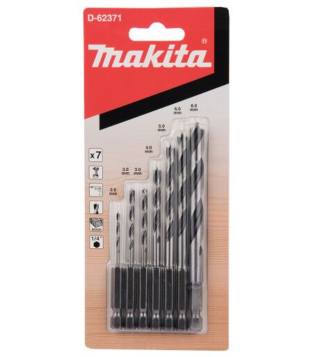 Makita D-62371 Ensemble 7 meches a bois hélicoidales, emmanchement hexa 1/4''