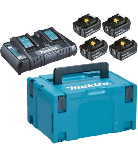 Pack 4 Batteries 6Ah BL1860 + Chargeur double MAKITA DC18RD + coffret Makpac - 198091-4
