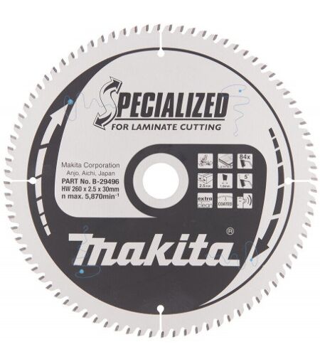 Makita B-29496 Lame de scie circulaire, alliage T.C.T spécialisé, 260 x 30 mm, 84 dents