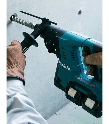 Perfo-Burineur MAKITA DHR263 - Moteur puissant de 36V : utilise deux batteries 18V, des batteries d'ampères différentes peuvent être mélangées - 3 modes de travail : rotation, percussion, rotation + percussion - Comprend un autre mode pour faire pivoter la spatule ou le ciseau et pour le placer dans la position requise - Interrupteur d'inversion de rotation - Changement des charbons de l'extérieur, facilite l'entretien du perfo-burineur - Corps divisé en deux parties pour réduire considérablement les vibrations atteignant l'utilisateur - Technologie XPT : protège la machine dans des conditions défavorables, empêche les particules de poussière et les gouttes de pluie d'entrer - Éclairage de la zone de travail grâce à des LED haute luminosité - Indicateur de batterie faible indépendant pour chacune elles, lorsque l'un d'eux est allumé la machine s'arrête, devant changer la batterie ...