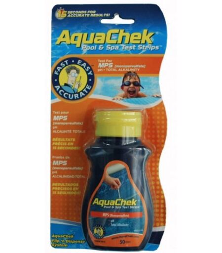 Présentation des bandelettes de Test Aquachek orange 50 bandelettes test permettant de contrôler le pH, l 'oxygène actif et l'alcalinité totale de votre eau de piscine. Ces bandes sont idéales pour les personnes utilisant l' oxygène actif comme désinfectant pour leur bassin.. Obtenez 3 résultats de test importants en une fois ! Il suffit de tremper une bande AquaChek orange dans l'eau de votre piscine ou de votre spa pendant une seconde et retirez-la immédiatement. Pour que l'eau de la piscine reste propre et saine, testez la une à deux fois par semaine. Si vous testez un spa, nous vous recommandons de faire le test avant et après chaque utilisation. ...