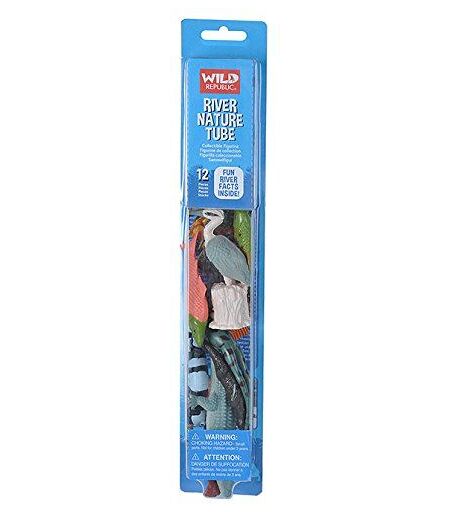 Inside this nature tube is duck Piranha Crocodile salmon Heron bass turtle bullfrog Beaver River Otter salamander Anaconda. Theses figures is for 3 years and up. Package dimensions is 14a¿ L x 2.5a¿ W x 1.5H which is makes it easy to be used as a stocking stuffer. All the figures are hand painted and made of Phthalate and lead-free materials. Excellent to make bath time more fun or in need of some travel toys to entertain the kids in the back of the car on a long or short trip. Do not forget the possible STEM (science technology engineering and mathematics) implications that can be used at home or in the classroom. Wild Republic has specialized in designing realistic stuffed animals and educational toys for kids since 1979. ...