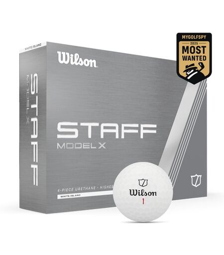 The Wilson Staff Model® X golf ball is a tour-caliber, four-piece urethane golf ball that delivers unmatched precision, speed and consistency. Made for players who want a firm, fast ball, the Staff Model X goes longer and has more spin off the tee and off of irons. Each Staff Model X ball is painted using a finely controlled application process that ensures a nearly flawless finish, resulting in the highest-caliber performance. ...