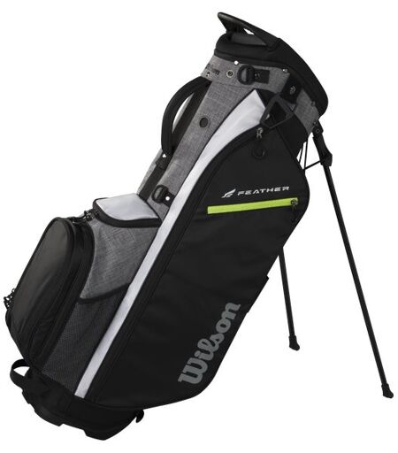 Lightweight performance and functionality is combined perfectly in the Feather Stand Bag. The 5-way top and grab handle make this bag easy to use. Walkers will have all the space needed with five pockets:• Two front golf ball pockets• Two large gear pockets• A velour valuables pocketsReinforced premium construction and a dual strap padded system provides comfort and balance for every loop. ...