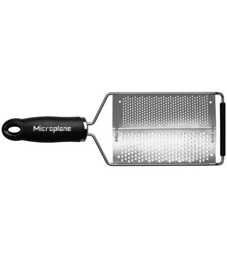 La râpe double lame Microplane pour vous aider deux fois plus ! Lame haute durabilité en acier inoxydable de qualité 2 lames en 1 : grains fins et gros grains Pied en caoutchouc antidérapant Manche ergonomique ultra confort Compatible lave-vaisselle : gain de temps assuré Dimensions : 31 x 11 x 3 cm ...