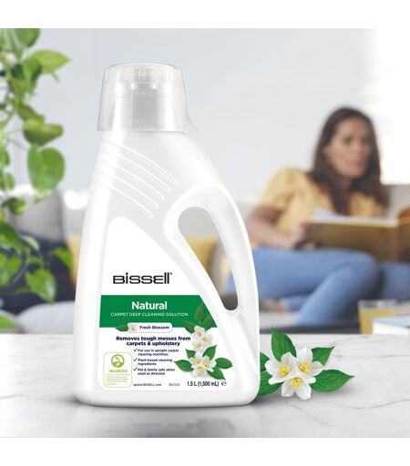 MAXIMISEZ VOS PERFORMANCES DE NETTOYAGE Solution de nettoyage pour tapis BISSELL® Natural pour les séries BISSELL® SpotClean® Pro, ProHeat® 2X Revolution, PowerWash ProHeat® 2X Lift-Off, StainPro, StainExpert, InstaClean, Big Green, HydroClean ProHeat® Complete, HydroWave, PowerClean, PowerClean 2X. La Solution de nettoyage en profondeur pour tapis BISSELL® Natural offre une méthode à base de plantes pour nettoyer vos tapis et vos tissus d'ameublement. Utilisez-la avec n'importe quel nettoyeur de tapis vertical BISSELL® et la série portable SpotClean Pro pour éliminer les salissures tenaces et rafraîchir votre domicile avec une solution de nettoyage à base de plantes puissante. Elle est sans danger pour une utilisation sur les tapis, les tapis de zone, les tissus d'ameublement et d'autres surfaces souples autour de votre maison, et elle est également sans danger pour les enfants lorsqu'elle est utilisée conformément aux instructions. Action de nettoyage élevée de manière naturelle. Élimine les taches tenaces. Sans danger pour une utilisation sur les tapis, les tapis de zone et les tissus d'ameublement. Formule respectueuse de l'environnement. Formulée avec des détergents biodégradables et sans métaux lourds, phosphates ni colorants. Ingrédients de nettoyage botaniques. Laisse un léger parfum de fleurs fraîches. ...