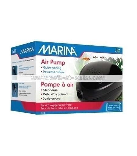 La pompe a air Marina 50 allie puissance de rendement et fonctionnement silencieux - Cette pompe permet d'augmenter la circulation de l'eau ainsi que son oxygénation - Elle peut également servir a faire fonctionner des appareils tels que les diffuseurs, les rideaux de bulles d'air et les ornements actionnés par l'air - Pour aquariums de 10 a 60 L - Dimensions : 9 x 6,5 x 4,5 cm. ...