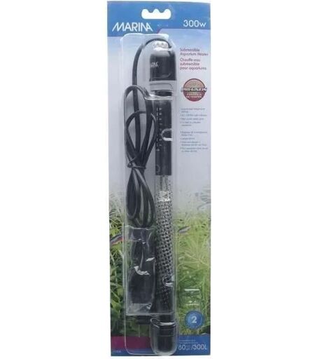 Chauffe-eau submersible de 300 watts pour aquariums d'eau douce et d'eau de mer. Longueur : 27 cm. Convient a des aquariums de 300 L ou moins. Bouton facile a atteindre pour régler la température. Régulateur de température facile a lire et a utiliser. Témoin lumineux marche/arret. Fait de verre extremement résistant. ...
