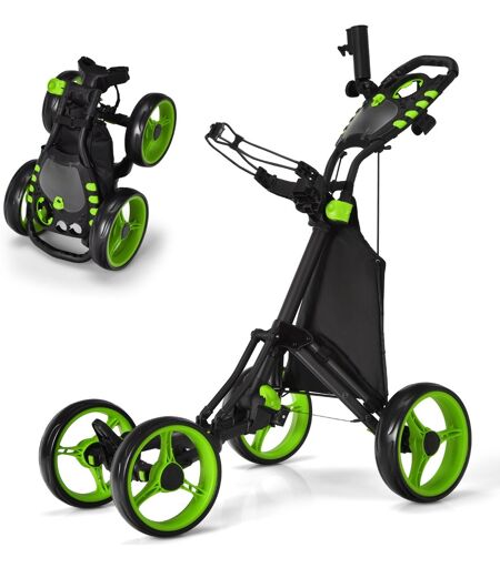 CostwayChariot de Golf à Pousser ou à Tirer Chariot de Golf Pliable Léger à 4 Roues Chariot de Golf Avec Sac Imperméable et Frein à Pied Vert
