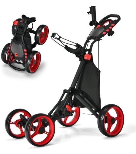 Chariot De Golf 4 Roues Pliable À Pousser Ou À Tirer Costway-Sac Imperméable-Frein À Pied-Porte-Parapluie,Poignée-Rouge