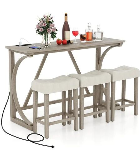 Costway Ensemble De Table De Bar 4 Pièces Avec Prise De Courant - 3 Tabourets Rembourrés - À Hauteur De Comptoir - 3 Personnes