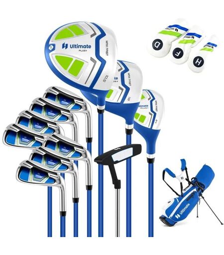 >Set complet comprenant 3 bois, 7 fers et un putter >Les 3 bois sont fournis avec couvre-chefs de protection >Driver #1 avec tête en alliage d¿aluminium et large sweet spot >Tous les bois sont équipés d¿un guide d¿alignement >Fers avec têtes en acier inoxydable >Bois et fers avec manches en graphite >Putter maillet avec lignes d¿alignement pour plus de précision >Poignées antidérapantes pour un meilleur contrôle >Putter avec manche en acier >Poches multiples dont une imperméable >Poche pleine longueur et 2 poches frontales >Comprend un porte-parapluie, un crochet pour serviette et un support pour gant >Sac portable avec 3 poignées supérieures et poignée souple >Bretelles épaisses et rembourrées >Coussin lombaire >Base escamotable ...