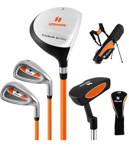 Costway Sac De Golf Trépied Pour Enfants Ensemble De Clubs De Golf 5 Pièces Avec Support & Protecteur De Pluie, 11 À 13 Ans, Jaune