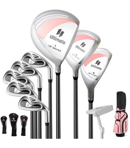 Costway Sac De Golf Trépied Pour Femmes, Ensemble De Clubs De Golf 9 Pièces Avec Sac De Chariot Portable, 3 Protèges-Chef Rose