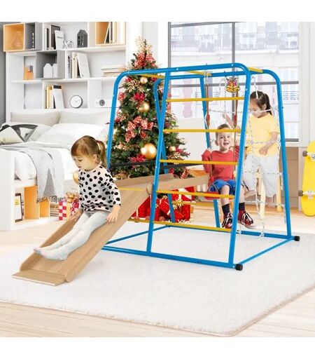 Costway Escalade Enfant Montessori, Parcours Motricité Bébé Avec Toboggan Et Balançoire Pour Garçons Et Filles De 3+ Ans