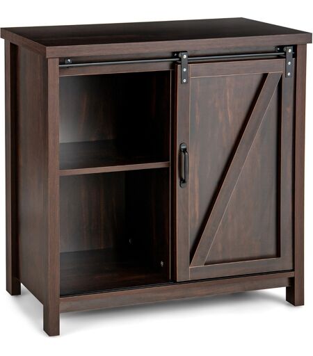 CostwayBuffet Meuble de Rangement Cabinet de Cuisine Indépendant avec Porte Coulissante de Grange Plateau Spacieux 4 Compartiments Marron