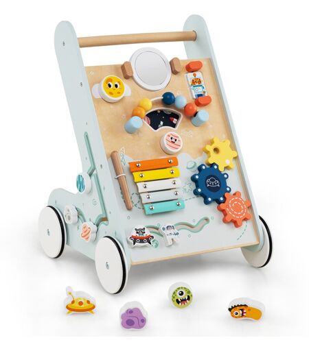Ce jouet d'éveil est absolument sûr avec ses bords arrondis et sans éclats, et dispose d'un design triangulaire robuste pour une stabilité fiable, tandis que les tout-petits naviguent à travers des fonctionnalités amusantes comme un xylophone, un tri de formes et plus encore. De plus, ce jouet à pousser sur le thème de l'espace favorise les capacités cognitives, l'équilibre et la coordination tout en offrant un espace de rangement pratique pour votre petit organisateur. Ce soutien à la marche est un cadeau idéal pour toute occasion et un bon choix pour les petits explorateurs à partir de 1 an. Attributs : 【Centre d'activités 8-en-1】Le captivant centre d'activités 8-en-1 de ce jouet d'éveil comprend un miroir en acrylique rotatif, un univers, des blocs inclinables, un xylophone avec un marteau, un rouleau, un jeu de suivi, des roues rotatives et des tri de formes polyvalents qui stimulent les sens de votre enfant et améliorent son expérience d'apprentissage. 【Sécurité accrue】Ce soutien à la marche en bois dispose de bords arrondis et d'une surface sans éclats pour garantir un environnement de jeu sûr. Ainsi, les enfants restent dans un environnement de jeu sécurisé tout au long de leur parcours. 【Stabilité & Fiabilité】Avec sa structure triangulaire stable et sa poignée facile à saisir, ce jouet de marche soutient de manière fiable les premiers pas de votre bébé. Les roues faciles à manœuvrer sont équipées de bandes en caoutchouc pour protéger vos sols et garantir une conduite silencieuse. 【Apprendre en jouant】Ce jouet à pousser pour bébés favorise l'équilibre et la coordination, renforce les muscles des jambes et stimule la créativité et l'imagination avec des activités pratiques. De plus, il offre un espace de rangement supplémentaire pour que l'enfant puisse apprendre à organiser et à ranger ses jouets. 【Le cadeau parfait】Ce soutien à la marche est décoré d'un adorable motif spatial et constitue un excellent cadeau pour les anniversaires, Noël ou les baby showers, adapté aux garçons et aux filles à partir de 1 an. Caractéristiques : Possibilités d'apprentissage et de jeu infinies avec un design 8-en-1 Blocs pliables avec différents motifs pour l'éducation Bords arrondis pour garantir la sécurité lors du jeu et de la découverte La surface sans éclats assure la sécurité et le confort de votre enfant Offre stabilité et équilibre avec une structure triangulaire stable Une poignée facile à saisir, adaptée aux petites mains Roues faciles à manœuvrer avec des bandes en caoutchouc anti-rayures qui protègent vos sols Grand espace de rangement pour les jouets préférés de votre enfant ...