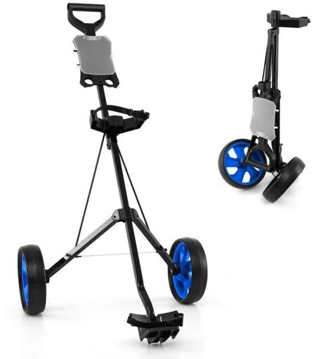 Chariot De Golf Pliable Costway-2 Roues En Eva-Emplacements Pour 4 Tees 4 Balls-Tableau De Score-Cadre Fer-Sangle Réglable-Bleu