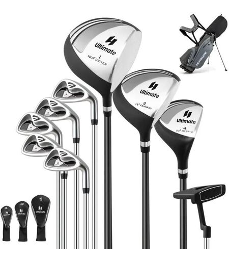 Costway Sac De Golf Trépied Pour Homme-Ensemble De Clubs De Golf 10 Pcs-3 Housses Bretelles Réglables Tête Lestés Des Clubs-Gris