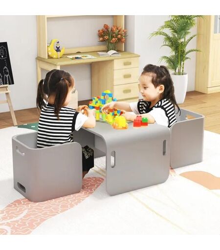 Costway Table Enfant Avec 2 Chaises Design Moderne En Bois D' Bouleau Pour Dessin, Manger, Etudier Et Jouer