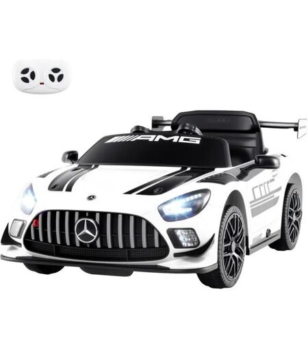 COSTWAY Mercedes-Amg Gt3 Voiture Électrique 12v Pour Enfants, Télécommande 2.4 G, Portes Hydrauliques, Led, Klaxon, Mp3, Usb, 3-8 Ans Blanc