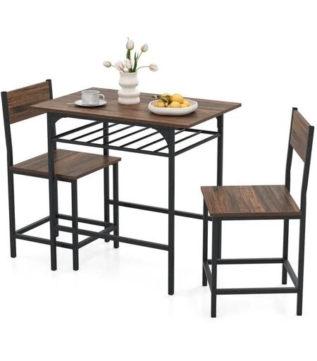 Costway Ensemble Table Et Chaises De Salle À Manger Pour 2 Personnes - Cadre En Métal, Étagère Marron