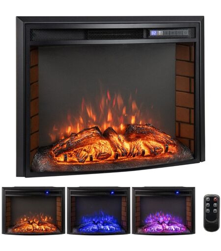 CostwayInsert de Cheminée Électrique Encastrable Courbé Chauffage 750W/1500W avec Télécommande Protection contre la Surchauffe Minuterie 6H Noir
