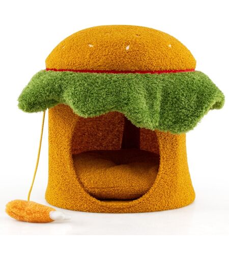 CostwayLit pour Chat Mignonne Condo en Forme de Hamburger avec Perchoir Rembourré Jouet Suspendu en Peluche Coussin Amovible Lavable Orange