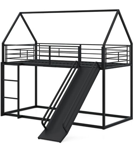 CostwayLit Superposé Maison avec Toboggan Cadre Bas avec Barrière de Sécurité et Échelle Lit Mezzanine Robuste 200 x 90 cm Noir