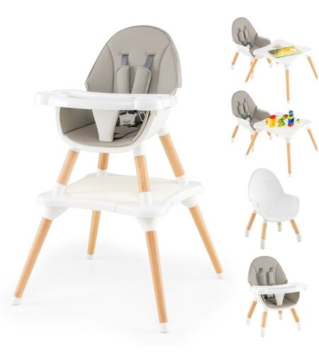 CostwayChaise Haute pour Bébé et Enfant Ensemble Table Convertible 6 en 1 avec Table en Blocs Harnais de Sécurité Plateau Amovible Chaise Gris