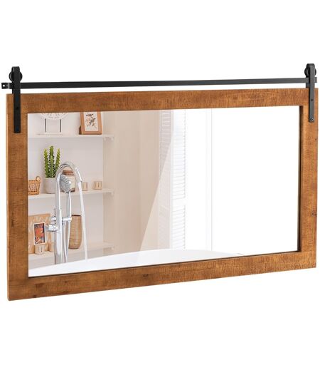 Costway100 X 66CM Miroir Murale de Ferme Style Porte de Grange Rectangulaire Miroir Murale avec Cadre en Bois Massif & Support en Métal Marron