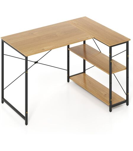 CostwayBureau d Ordinateur en Forme de L Bureau d Angle Réversible avec Étagère Réglable Table d Étude Gain de Place avec Cadre Métallique Naturel