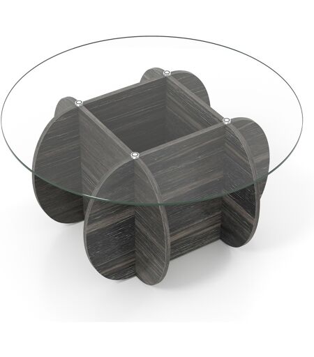 CostwayTable Basse Ronde de 89cm Table d'Appoint avec Plateau en Verre Trempé Base en Bois Massif Compartiment de Rangement Caché Charge 100kg Noir