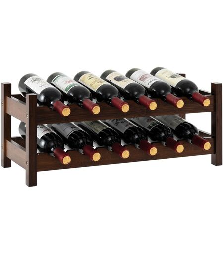 CostwayCasier à Vin Organisateur de Rangement pour 12 Bouteilles sur 2 Niveaux Support à Bouteilles en Bambou Étagère à Vin Café