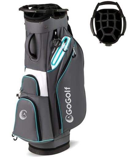 CostwaySac de Golf pour Chariot Sac de Golf Léger avec 14 Compartiments sur le Dessus Sac de Rangement Portable pour Clubs de Golf Gris
