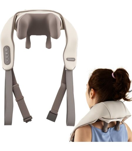 CostwayMasseur pour Le Cou et Les Épaules Appareil de Massage Shiatsu 4D Profond avec 2 Niveaux de Chauffage Oreiller de Massage Sans Fil Beige