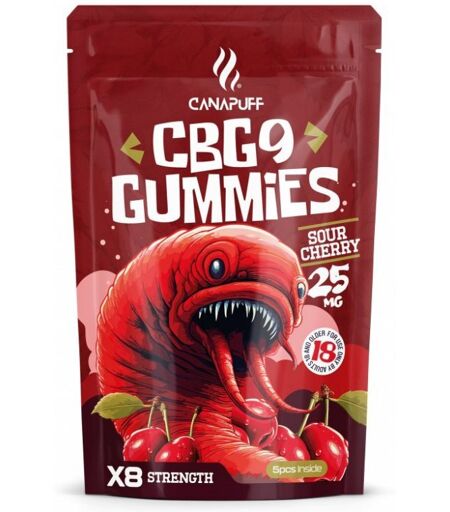 Canapuff Cbg9 Gummies Cerise Acide, 5 Pcs X 25 Mg Cbg9, 125 Mg