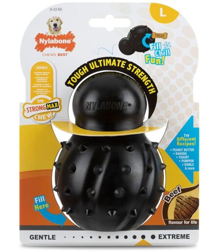 Nylabone Max Strength Jouet Mâcher Pour Chien En Forme De Cône En Caoutchouc Saveur B Uf Avec Friandises Taille L 0-23 Kg