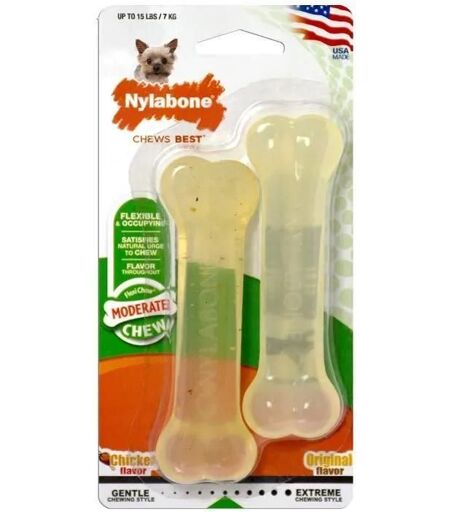 Jouet à Mâcher - Nylabone - Set de 2 - Aromes B uf/Poulet - Pour Chiens Peu Agressifs - Matériaux Souples