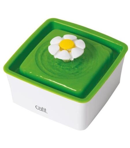 Cat It Abreuvoit Mini Avec Fleur - 1.5 L -50.7 Oz Liq.- - Blanc Et Vert - Pour Chat