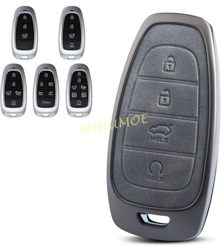 MIHUMOE Étui en métal et cuir pour télécommande de voiture, housse grise pour Hyundai Tucson Santa Fe Cruz Sonata Palisade IONIQ 5 Nexo, accessoires